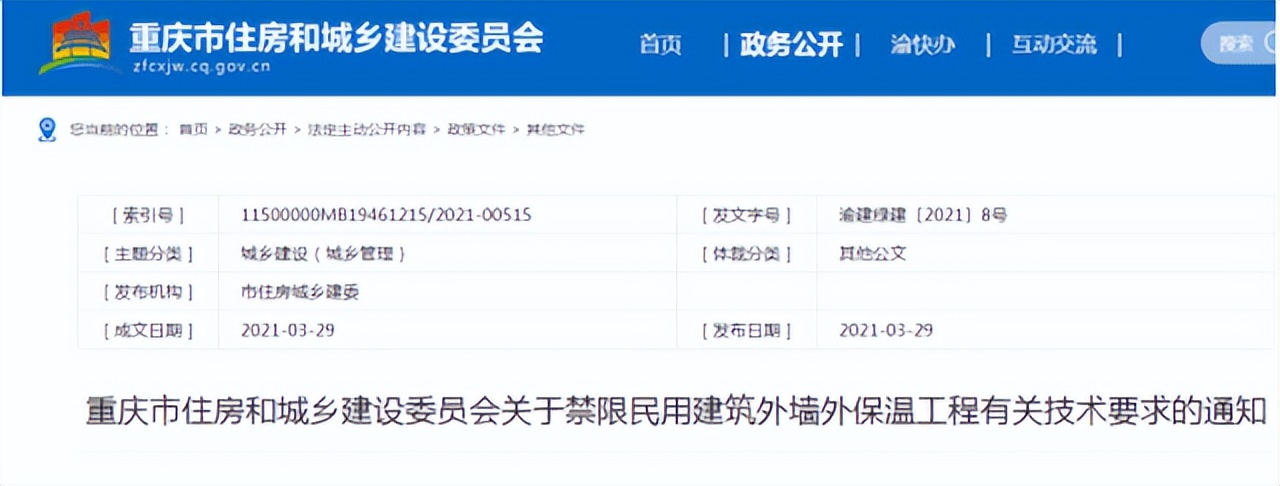 多地已經(jīng)出臺(tái)相關(guān)政策,禁止使用易燃、可燃材料作為高層民用建筑外墻外保溫材料。