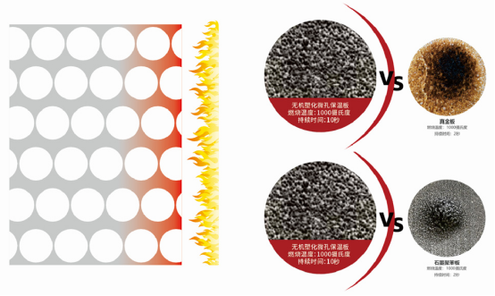 無機(jī)塑化微孔保溫板耐火極限超過3小時,過火后不粉化,整體性保持良好。