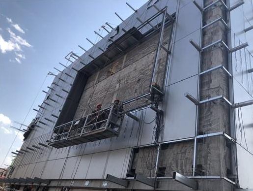 干掛鋁板也就是鋁單板用龍骨掛在外墻裝飾面,工序分為龍骨安裝、保溫安裝、鋁板安裝。