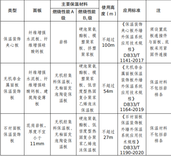 浙江省下發(fā)公文將保溫裝飾一體板歸類劃分制定標準,將保溫裝飾一體板劃分為五個大類,保溫裝飾夾芯板(巖棉類需要用到背板的材料)、無機非金屬保溫裝飾板、金屬飾面保溫裝飾板、石材飾面保溫裝飾板、有釉面發(fā)泡陶瓷保溫裝飾板。