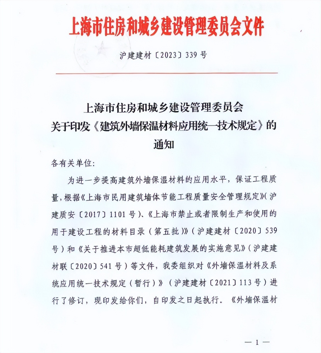 上海市住房和城鄉(xiāng)建設(shè)管理委員會規(guī)定:《建筑外墻保溫材料應(yīng)用統(tǒng)一技術(shù)規(guī)定》。